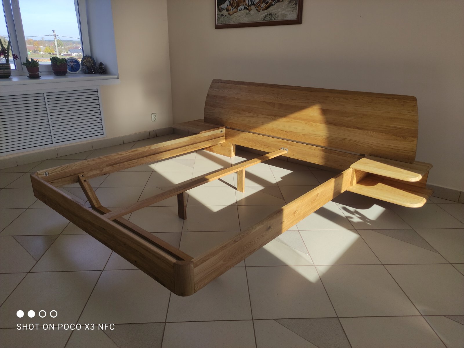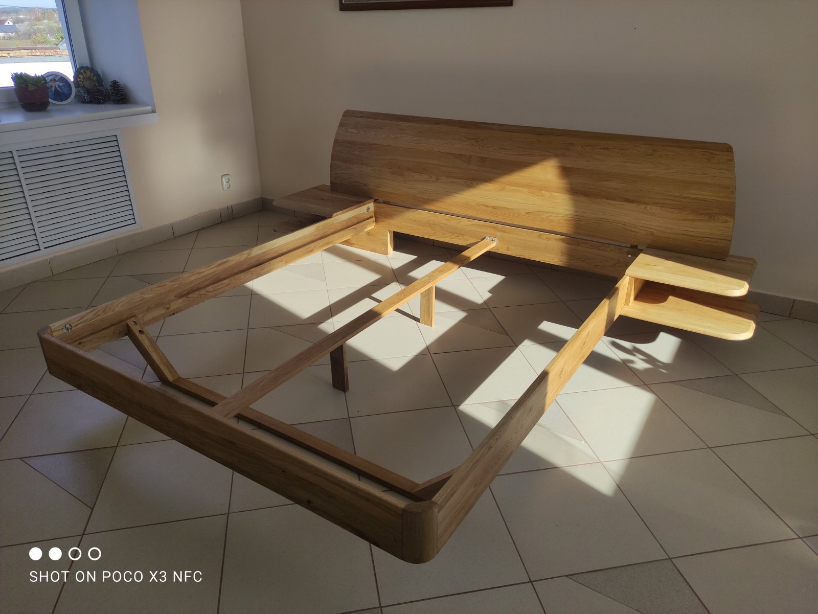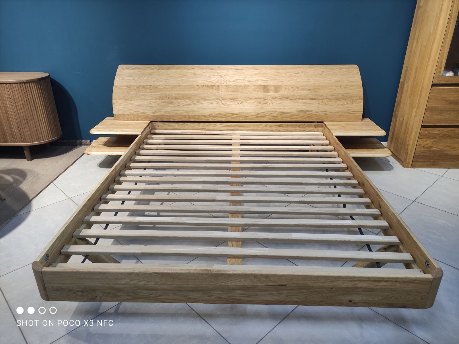 Кровать из массива дуба со встроенными полками Amandi