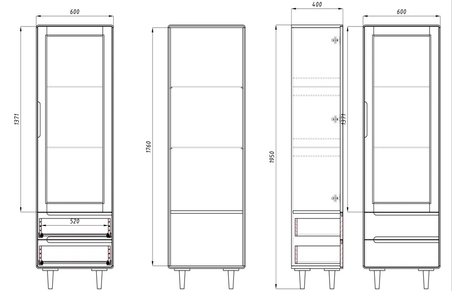Габаритный размер: в*ш*г — 1950*600*400 мм.