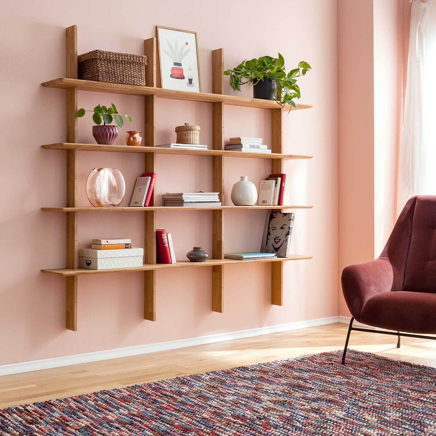 Стеллаж из массива дуба настенный Берг 2