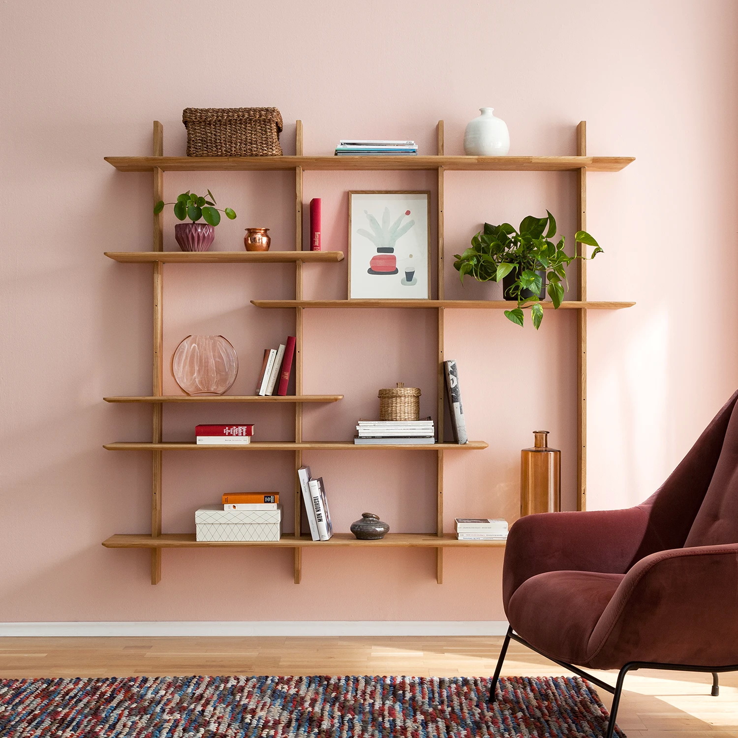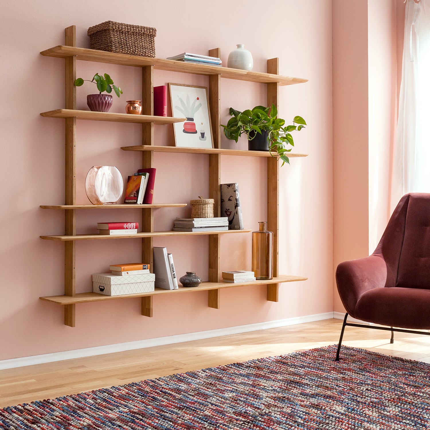 Стеллаж настенный из массива дуба Берг 3