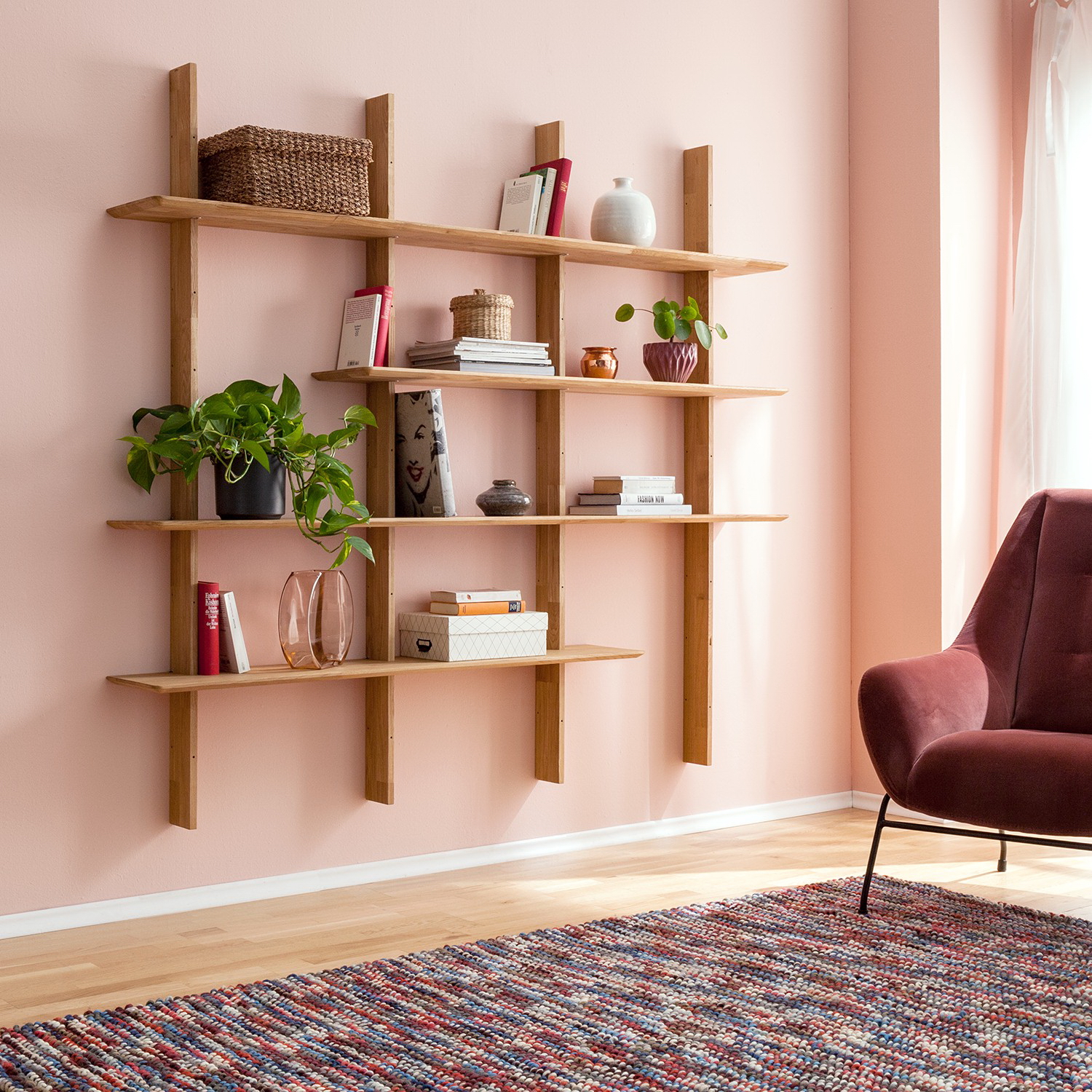 Стеллаж настенный из массива дуба Берг 4