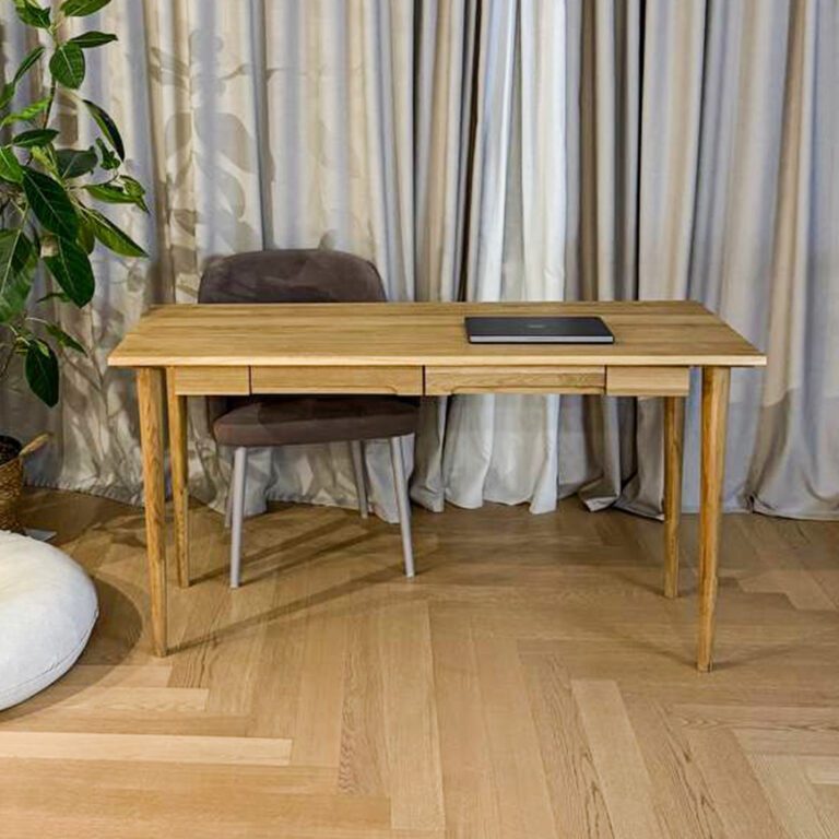 Этот изящный стол, выполненный из благородного массива дуба, словно парит в пространстве, несмотря на свою прочность и основательность. Стол письменный из массива дуба Amandi – это воплощение лофт-дизайна, где грубая фактура натурального дерева встречается с лаконичными линиями и функциональностью. Забудьте о громоздкой мебели! Стол письменный из массива дуба Amandi шириной 140 см дарит вам простор для работы и вдохновения. Два выдвижных ящика скроют все необходимые мелочи, чтобы ничто не отвлекало вас от главного. Позвольте себе роскошь работать и творить за столом, который станет не просто предметом мебели, а настоящим источником вдохновения! Преимущества стола письменного из дуба: В первую очередь, стоит заметить, что письменные столы из массива дуба являются очень прочными. Также натуральные деревянные столы могут похвастаться долгим сроком службы. Натуральное дерево по праву признано самым экологически чистым и безопасным для здоровья материалом. Также натуральное дерево отличается теплотой. Одним из самых значительных преимуществ столов из массива дерева является их эстетичный и добротный внешний вид. Цветовое исполнение: масло натур/отбеленный дуб/бейц-масло+воск/эксклюзивная палитра